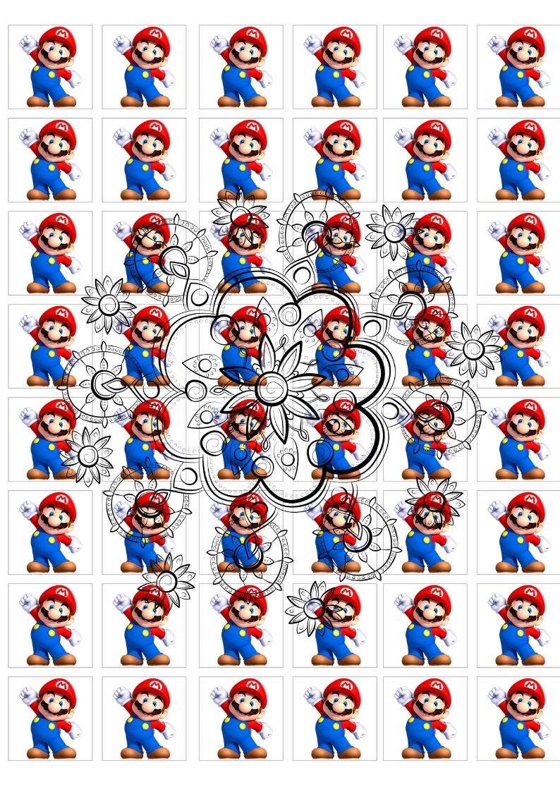 TRANSFER PARA CHOCOLATE MÁRIO BROS FOLHA A4 48 IMAGENS